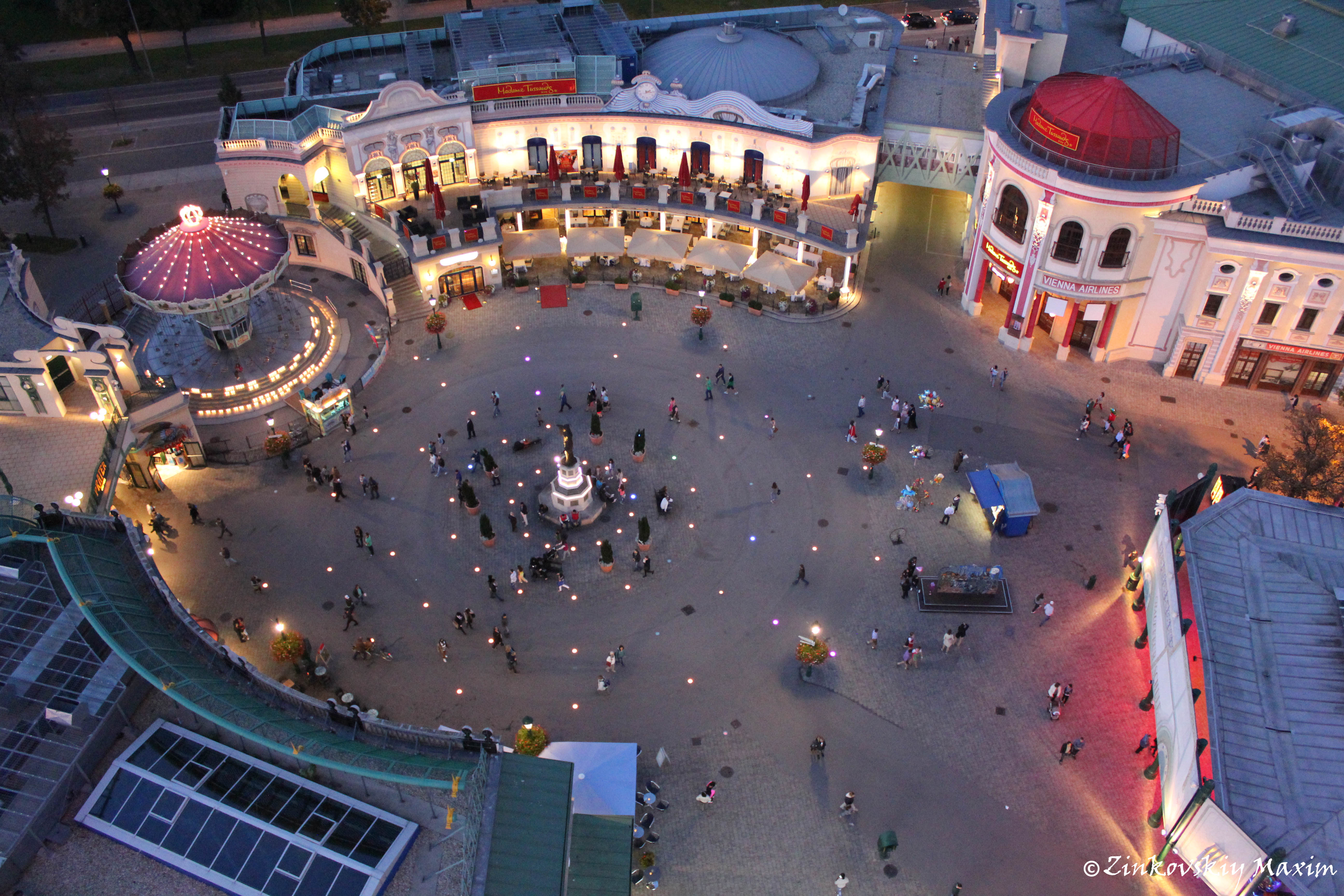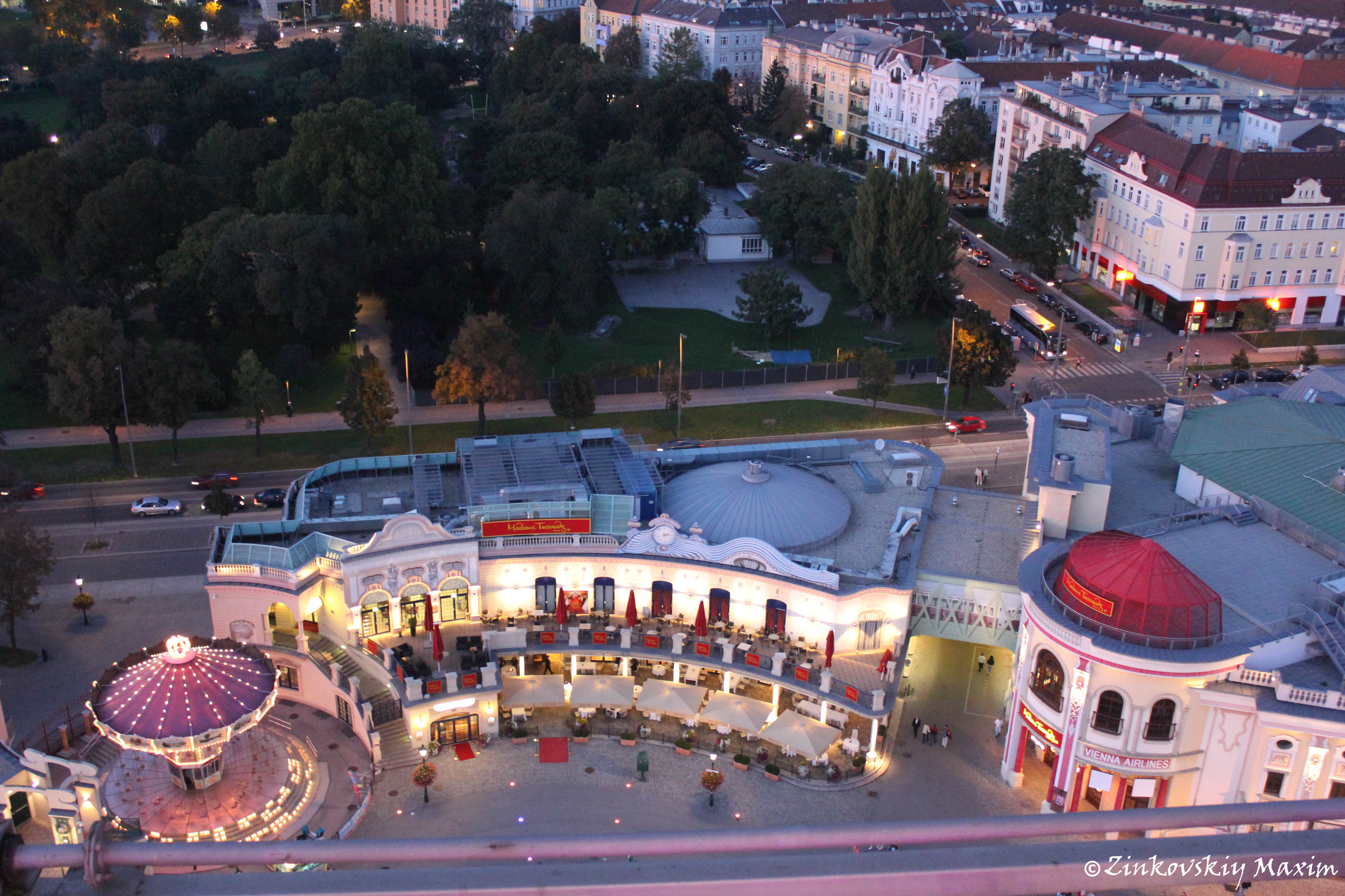 Вид на музей Мадам Тюссо из кабинки колеса в парке Пратер |