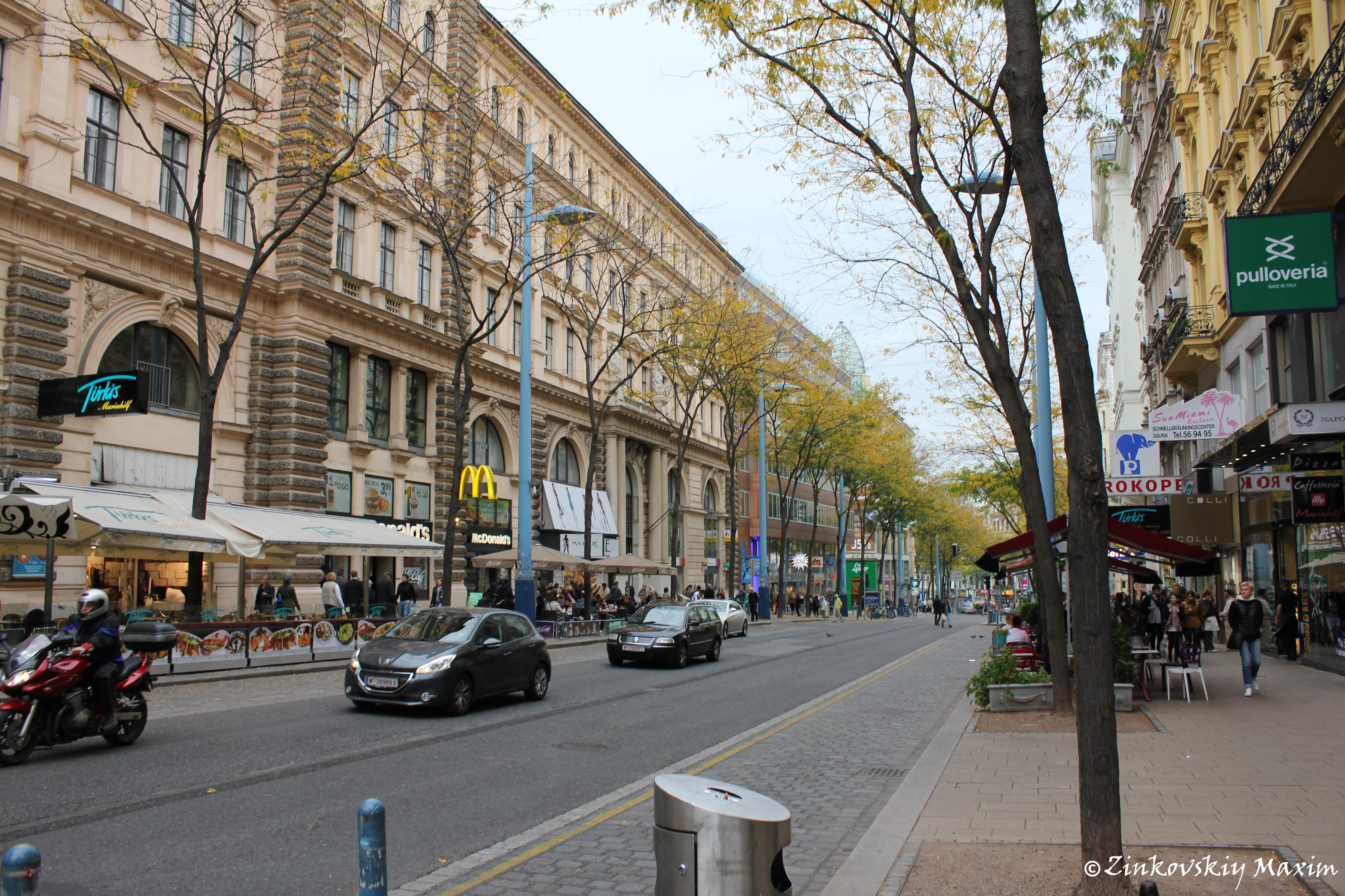 Главная торговая улица Вены Марияхильферштрассе (нем. – Mariahilfer Straße) – очень известна среди туристов. На этой улице собраны всевозможные торговые центры, магазины и бутики. Также здесь расположены кафе и рестораны. И не смотря на то, что здесь всегда кипит жизнь, по улице приятно просто прогуляться. Она не широкая, но очень протяженная. Тротуары достаточные для прогулок.