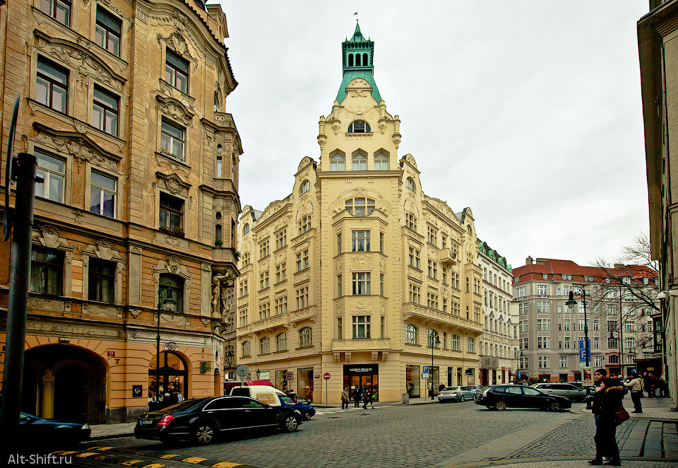 Общественный дом | Площадь Франца Кафки (Franze Kafky) | Парижский проспект (Pařížská třída) | Дом «У Чёрной Мадонны» (U Černé matky Boží) |