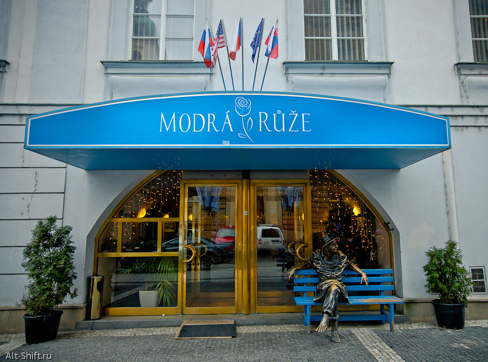 Памятник Босоногому мужчине возле отеля Modrá Růže | Сословный театр |