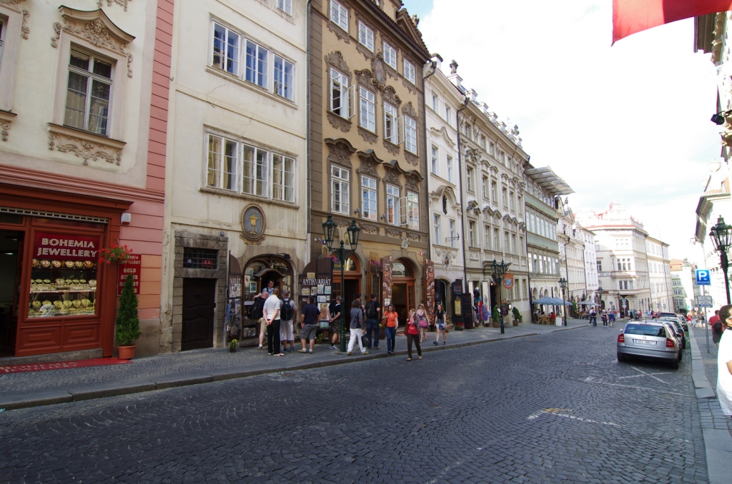 В доме № 35 «У белого ангела» жил известный чешский путешественник Эмиль Голуба, часто путешествующий в Африку. В следующем доме – «У двух солнц» родился сам Ян Неруда. Об этом свидетельствует табличка из бронзы с изображением молодого человека, держащего в руках щит с масонским треугольником. В конце улицы находится дом «У трех королей». От этого дома вверх идет лестница, в основании которой установлены скульптуры Брокоффа, которые представляют святого Яна Непомуцкого и святого Иосифа. Лестница приводит к Лоретанскому монастырю на Градчанах.