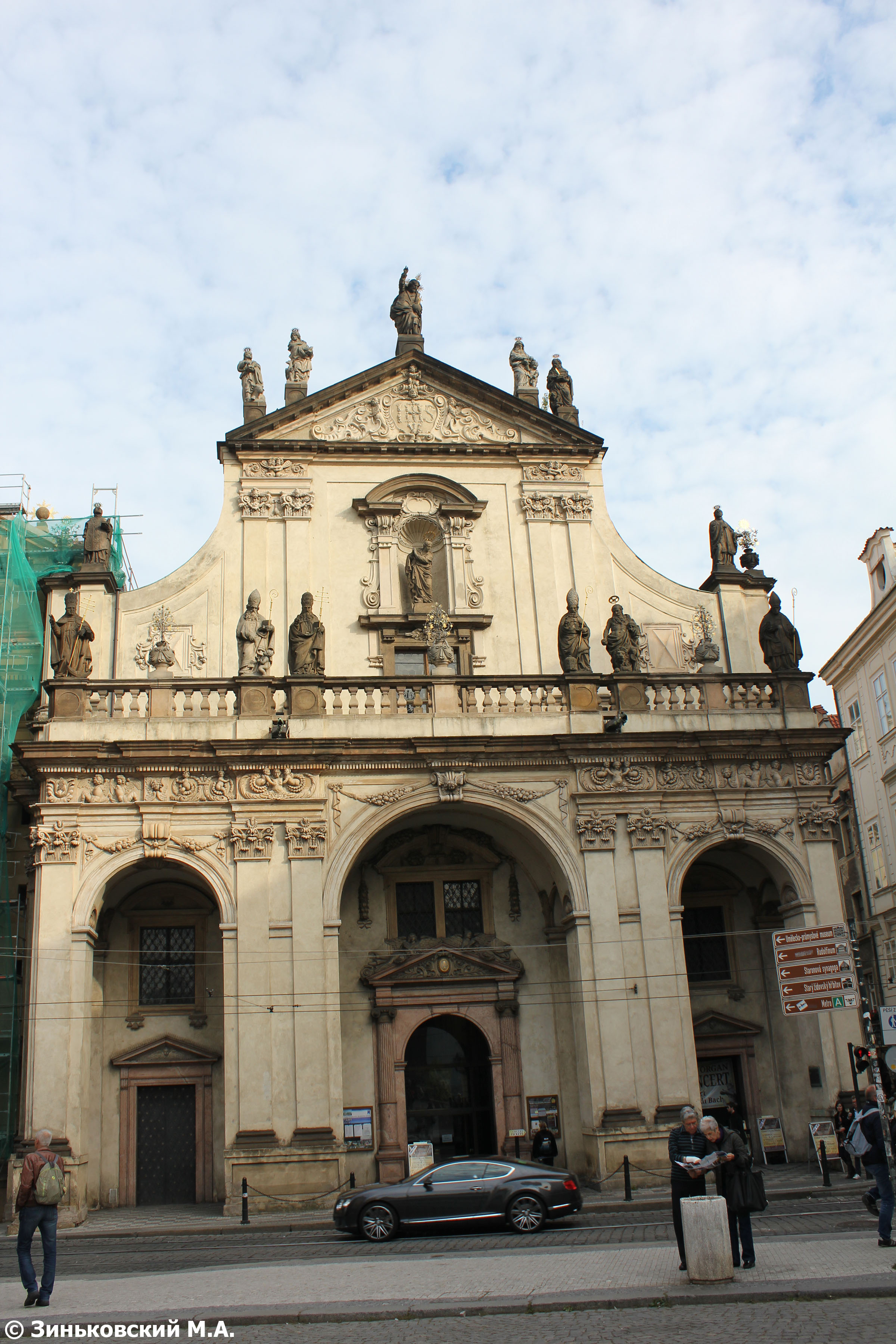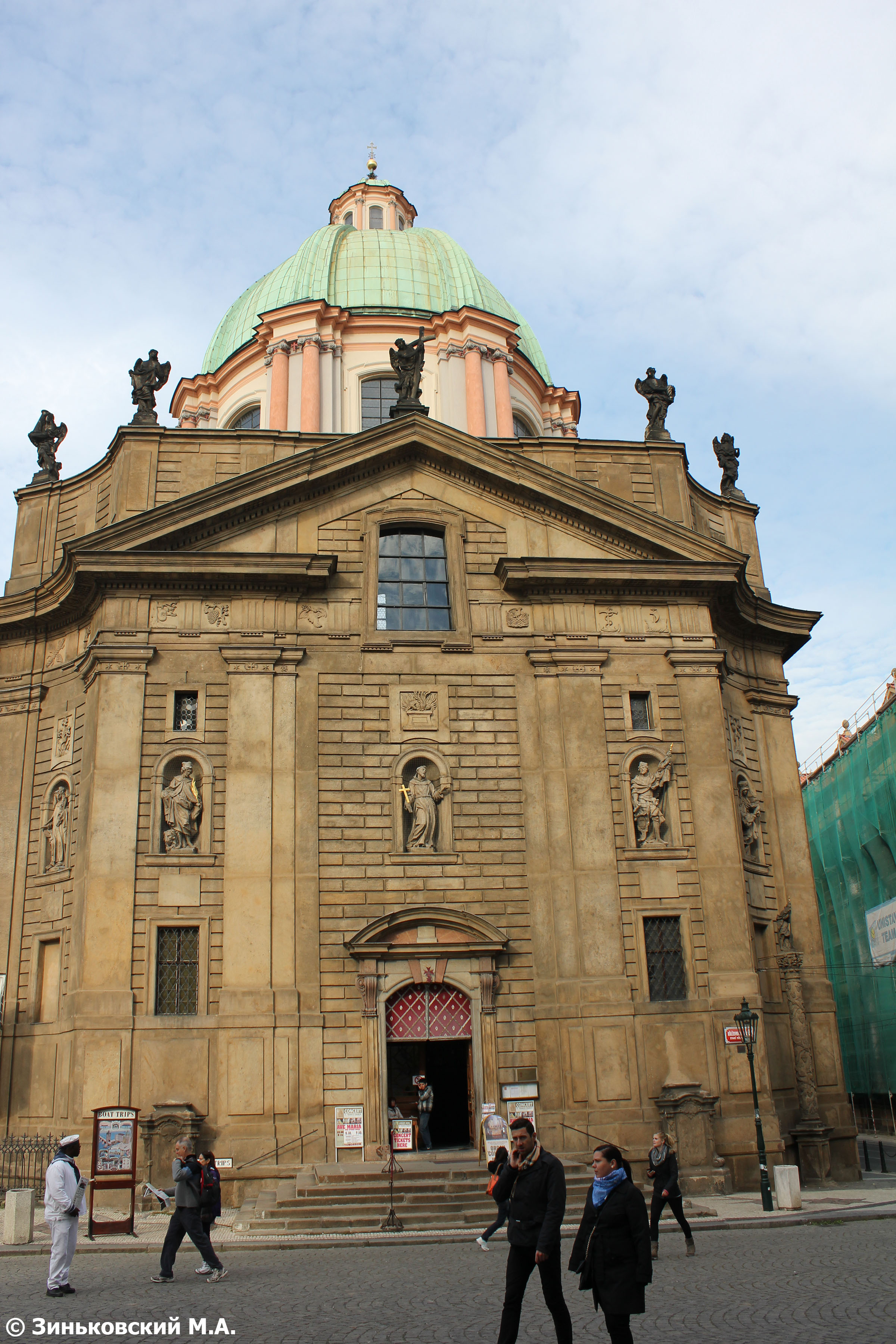 Костел Святого Франциска (чеш. Kostel Svatého Františka z Assisi), расположен на северной стороне площади, был построен еще в XVII веке крестоносцами. Причем в его основании легли остатки кладки костела Святого Духа. Ее архитектором был француз Жан Батист Матей. При этом он смог сохранить части оригинального готического собора в кладке нижнего уровня. Архитектура церкви в барочном стиле и с куполом была образцом для многих архитекторов Праги в будущем. Напротив него – здание с известным музеем Пыток. А на углу дома – знак империи Габсбургов.