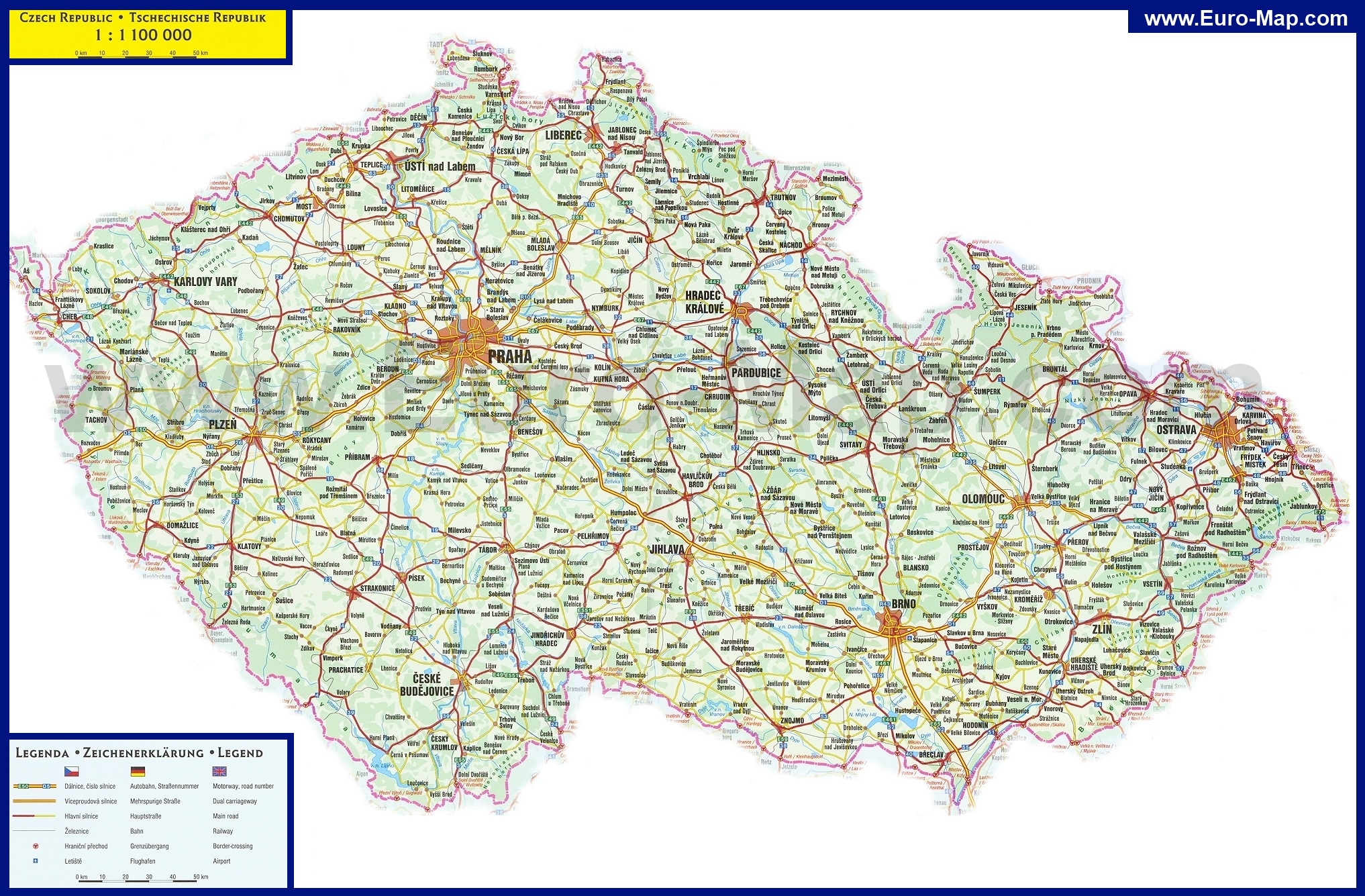 Подробная карта Чехии